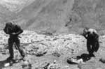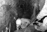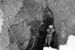 Le premier chantier de désob de la salle du mythe de Sisyphe à -150m, qui donne sur le Puits de l'hippocampe (P90). Gouffre des Citernes (GSO21)